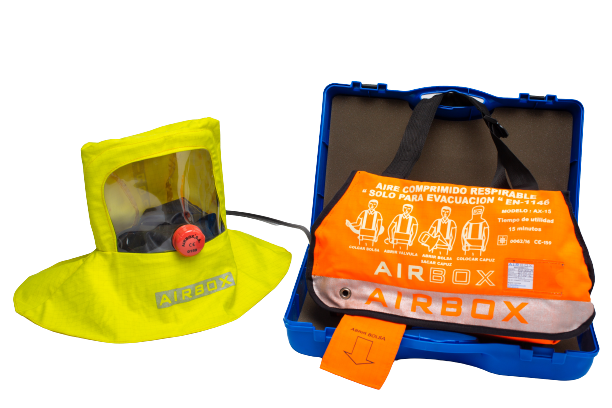 En situaciones de riesgo y emergencia, la evacuación de las personas de una manera rápida y segura es muy importante. Airbox dispone de un equipo autónomo de aire comprimido respirable a presión positiva de 15 minutos de autonomía, patentado por Airbox hace más de 38 años.