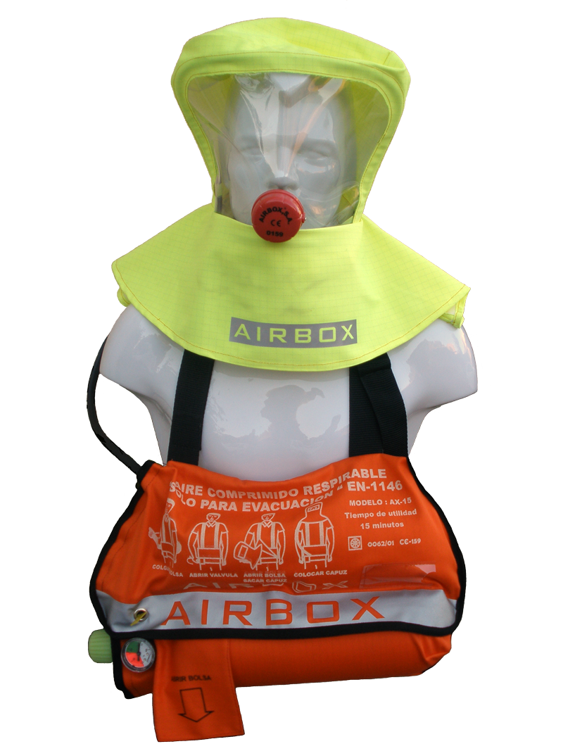 En situaciones de riesgo y emergencia, la evacuación de las personas de una manera rápida y segura es muy importante. Airbox dispone de un equipo autónomo de aire comprimido respirable a presión positiva de 15 minutos de autonomía, patentado por Airbox hace más de 38 años.